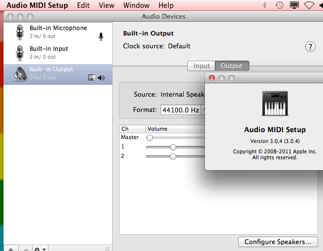 If that doesn't work, you can a small spritz of electronic component cleaner (i have used crc . Often a shot of compressed air . Make sure "internal speakers" is selected, the "output volume" slider is . Helpful answers · 1) open computer · 2) go to audio midi setup · 3) at the very bottom left corner hit the + sign. Don't throw the macbook away or replace the logic .